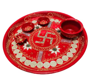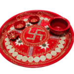 6 Inches Brass Plain Pooja Thali Set, Brass Thali Set For Bhog, Set Of 1 Thali, 2 Katori, 1 Glass And 1 Spoon, Gifts For Puja Ceremony, Thali For Pooja Set Of 5 Pieces, Size – 6 Inches