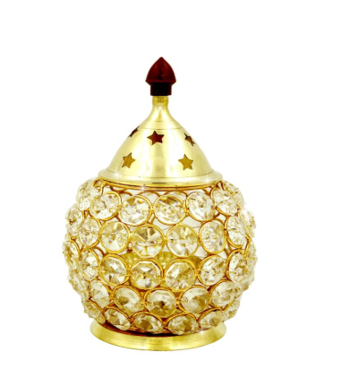 Decorative Indian Tea Light Holder / Diya Holder / Oil Lamp/ Candle holder Brass & Crystal Figure | Home Decor Ideal Gift