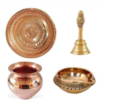 - DIMENSIONS: Thali diameter approximately 20 cm, complemented by appropriately sized bell, water pot, and offering bowl for convenient use