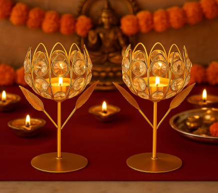Be the first to review “Crystal Tea Light Holder Set of 2 Tea Light Stand Shape Rose Votive Lotus Candle Holder for Home Decoration Diwali Diya Puja Gifts (Set of 2)”