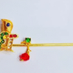 This is decorative Flute for Shri Krishna Sringar idol. We acknowledge that the Flute is not a professional musical instrument. It’s a symbolic Idol sringar product use in home temple. The design may little bit different from the image uploaded. The product is made of brass or golden coated german silver