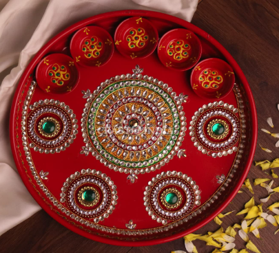 • Handcrafted Kundan and Moti Studded Decorative Thali for Festivals