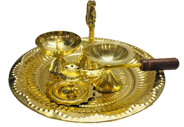 Brass Puja ThaliSet|Pooja Thali|Arati|Arathi|Arthi Bartan Thambulam Plate|Puja set|Pooja Plate SetHome Décor|ReturnGift|karwa chauth|Wedding|Anniversary|Corporate gifts- Kolam Thali Puja Set
