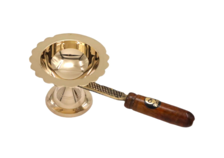 Pure Brass Akhand Diya with Wooden Handle Traditional Dhoop Di4a for Pooja Brass Puja Lamp for Temple Aarti Prayer and Home Decor