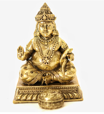 Pure Brass Kuber Murti | 3 Inch | Vastu | Good Luck and Prosperity | Kuber Idol for Pooja | Kuber Ji Ki Murti | Kubera Idol | Pooja Room | Home and Office | Wealth God |