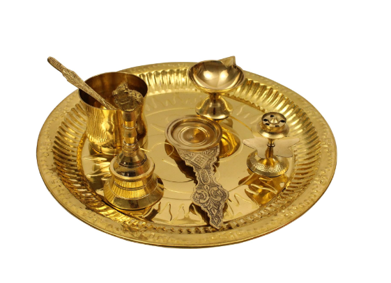 - Thali made of the finest brass, which will add elegance and charm to your puja room.
